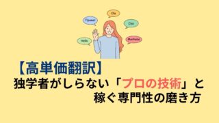 お金の稼ぎ方 【高単価翻訳】独学者が知らない「プロの技術」と「仕事に直結する専門性」の磨き方 「TOEIC高得点なのに、案件を獲れない…」「安い案件ばかりで消耗している…」もしあなたが独学で翻訳副業を始め、そうした壁にぶつかっているなら、それはあなたの語学力に問題があるわけではありません。足りないのは、「クライアントの依頼に応える、... 2025.10.05 お金の稼ぎ方スキルアップ資格